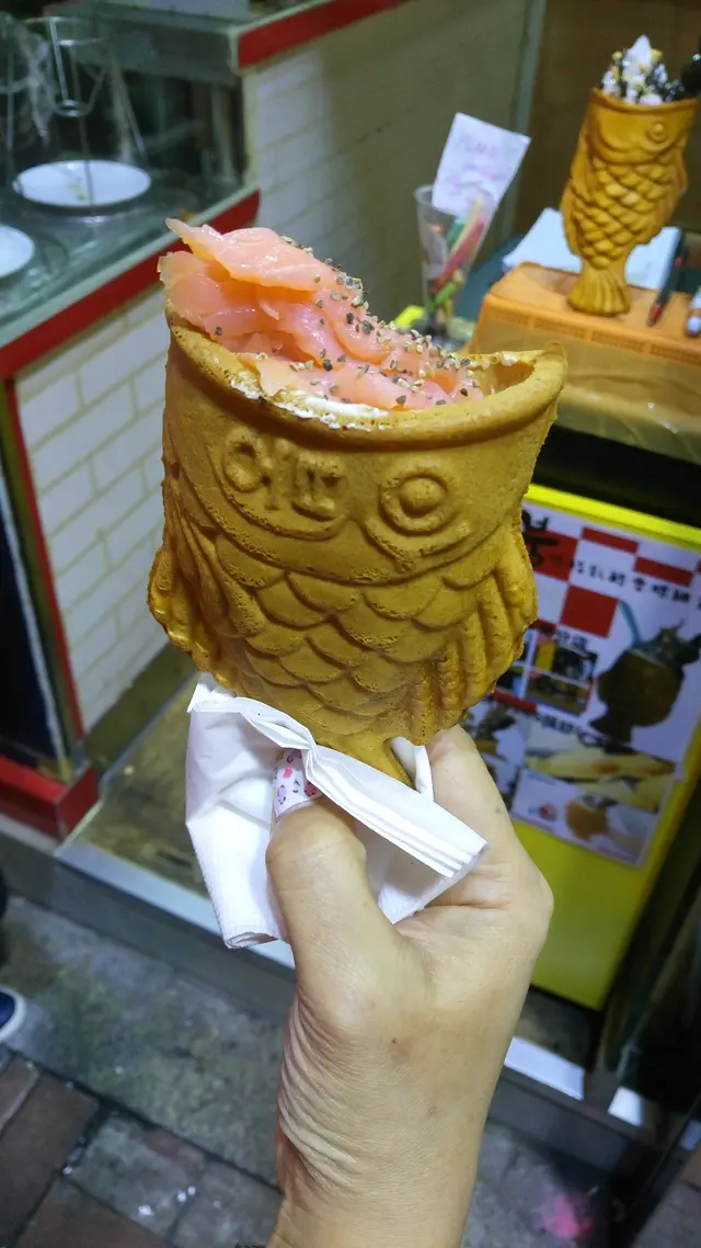 跟母親在附近吃完飯,還是有點口痕,便走過來掃街。看到這裡出了新口味的鯛魚燒,便走近研究一下。