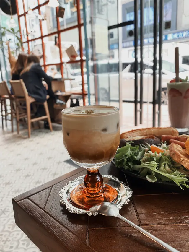 見好多人都推介佢所以就try try, 開心果奶蓋好濃,上面有啲開心果碎,令個味更濃,咖啡偏nutty所以中和左個苦,不過估唔到下面有媡奶,所以我覺得有啲甜,同埋有啲啲怪咁,所以我無飲曬🥹