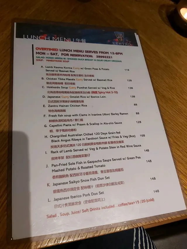 Menu 亦有不同國家的料理,就算成班朋友因口味不同都不怕!筆者與朋友點了一些「備長炭」燒的串燒以及燒物,友人點了印度傳統的chicken masala with rice,筆者點了滑蛋吉列豬扒配飯。