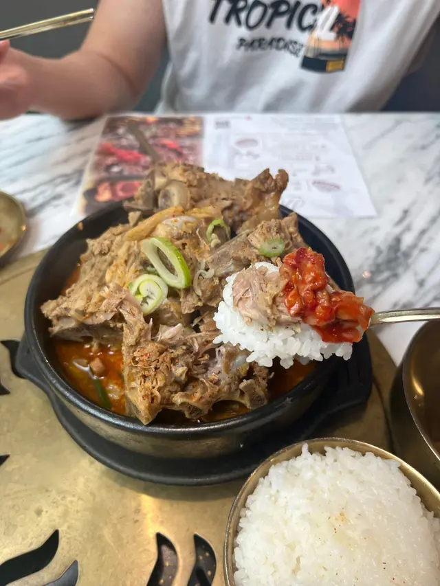 脊骨土頭鍋十分足料,並且以$78黎講,性價比超高,不過需要小心既係有啲脊骨肉比較難食到,對於女士黎講比較不友善,因為使用起來比較不方便,首次約會又要斯文形象既可以考慮避開依道菜啦。以食物質素黎講,肉會偏實正,雖然咁講,但土豆湯完美掩蓋咗肉既缺點,可以話係相輔相成,成個配搭相當完美,以前食過韓國餐廳,味道黎講可以話係有8-9成相似。