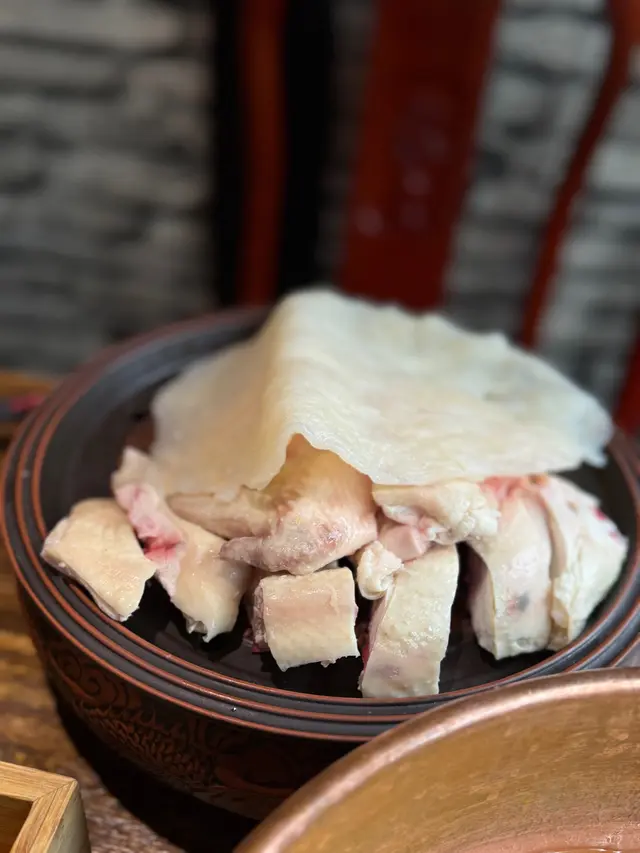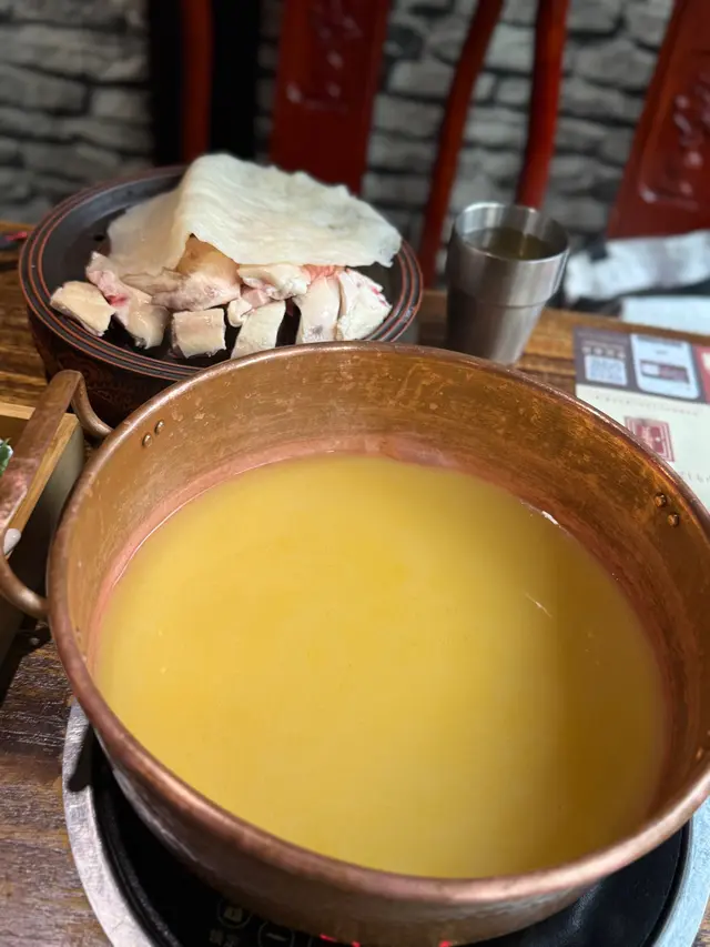 招牌花膠雞湯鍋(半隻雞),上枱嘅時候湯色金黃,香氣撲鼻。店員提示先飲湯,湯底入口順滑,雞味濃郁又帶花膠嘅膠質感,超級滋補。
