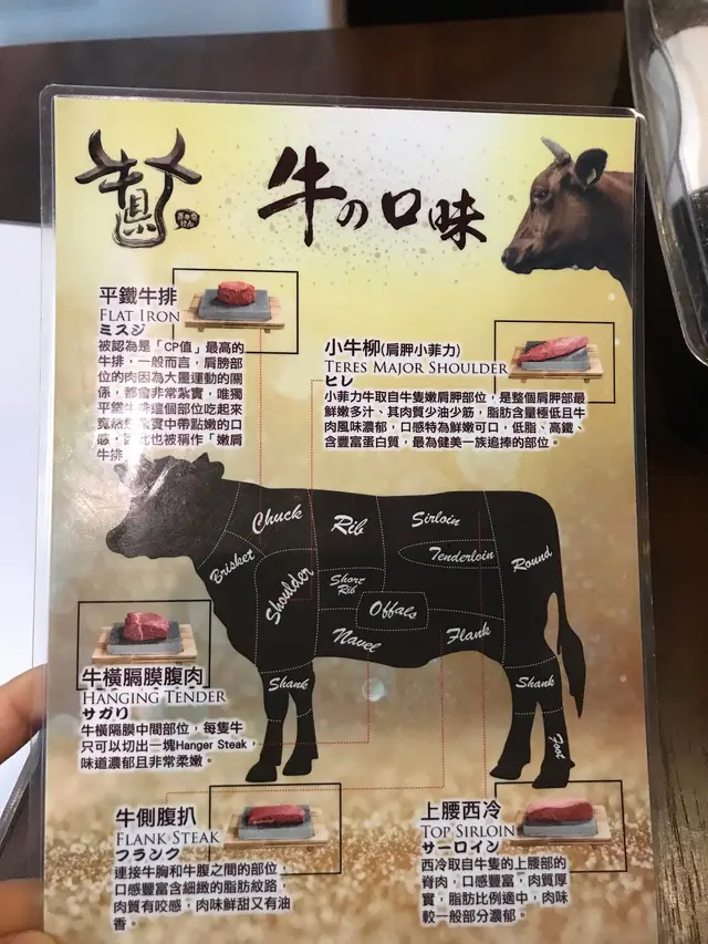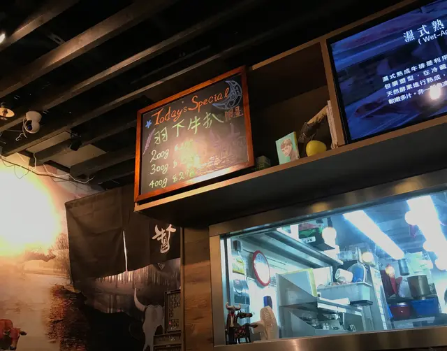 餐牌上冇,而係店內手寫既限定款式,羽下牛扒係位於鞍下既下部,因為牛肉既油脂分布猶如羽毛,所以被稱為,所以有呢個名稱。口感同無骨牛小排相似,食落較多筋,但牛味係三者之中最濃,不過牛橫隔膜腹肉比較岩我口味。