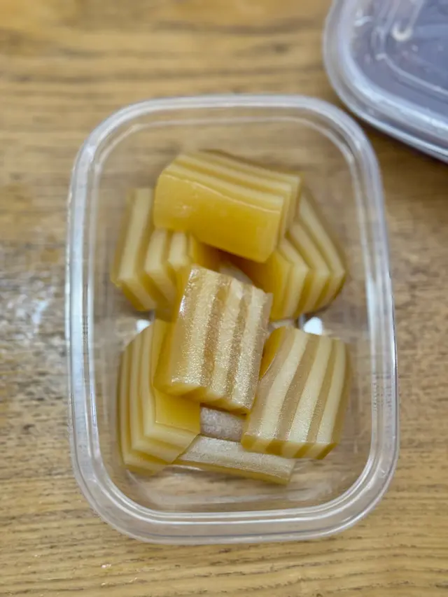 馬蹄粉千層糕:煙煙韌韌,老人家都咬到,甜度夠曬,仲有馬啼香,十蚊一盒大特價。