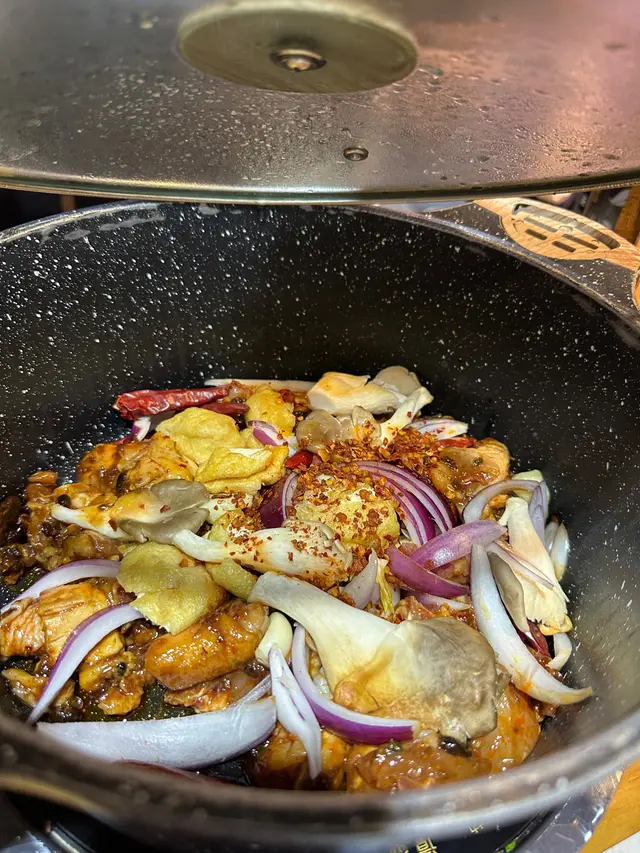 坐低後,侍應哥仔就即刻幫我地落雞煲,雞煲要自己炒,每2分鐘翻炒一次,前後4次就可以食啦!雞肉好嫩滑惹味,完全唔比食雞煲專門店差,真係好好味啊,因為係任食,所以我地叫左兩轉,食到大家lamlam 脷😋😋