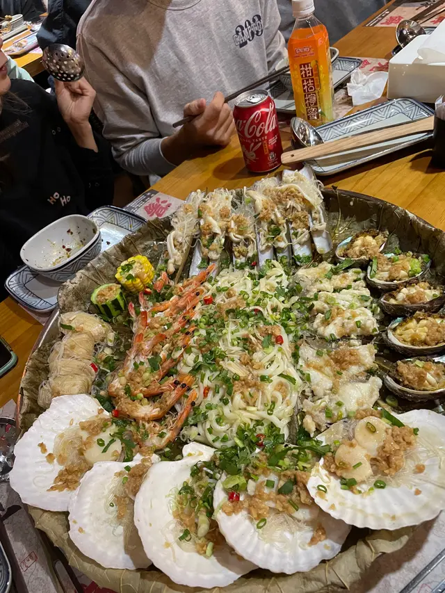 係食緊第二轉雞煲嘅時候,已經幫我地蒸好盤無敵大的海鮮啦!海鮮盤有「聖子、鮑魚、扇貝、海蝦、龍躉、烏冬」海鮮十分新鮮,用簡單嘅蒜蓉蒸,夠鮮甜美味!烏冬吸曬各款海鮮嘅精華,真係一絕😍😋