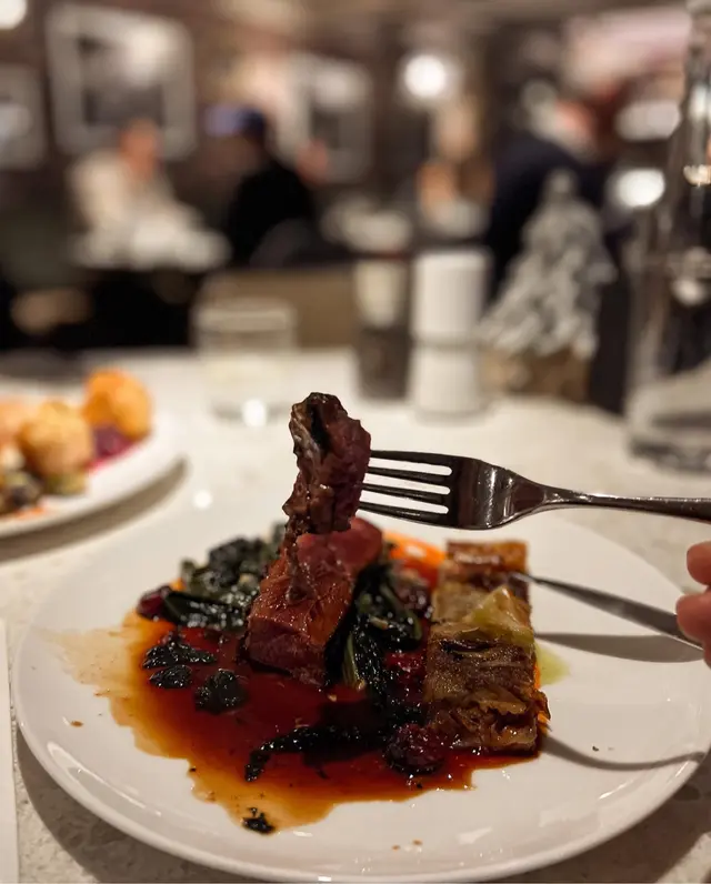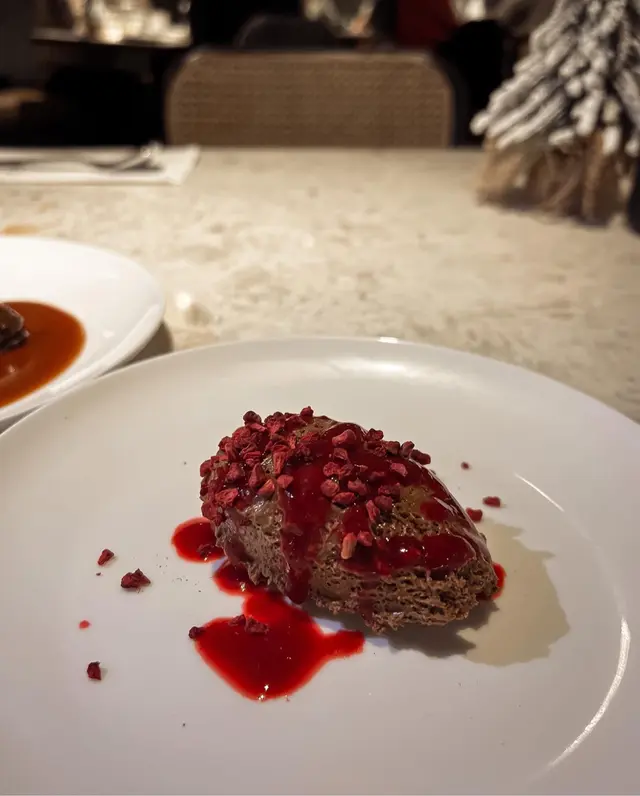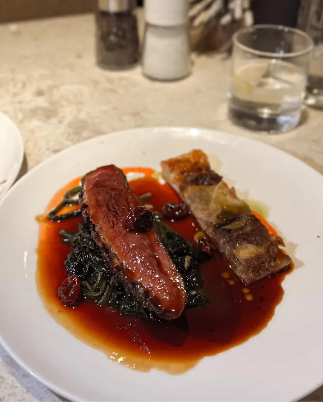 我order既時候都有d擔心會唔會係煙鴨胸🥹因為好怕好鹹,結果距係新鮮鴨胸🤩配車厘子🍒香草甜橙🍊烈酒醬,超級有冬天聖誕既味道,酸甜口味好開胃☺️旁邊有個菊苣撻,好養生🙈但味道其實好夾。