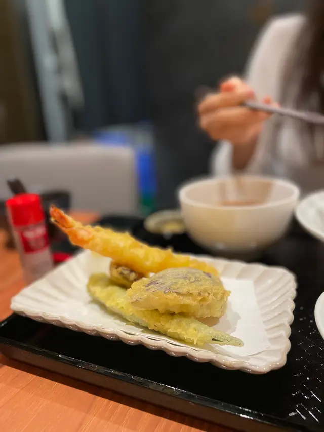 天婦羅盛合都幾豐富,有炸蝦、秋葵、茄子等。
