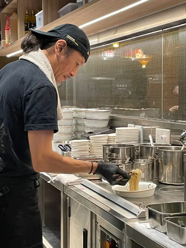 原來冷麵係由創辦人山本社長親身研發,個麵食落帶有麥香,配埋慢燉雞湯和魚湯做成沾麵汁。