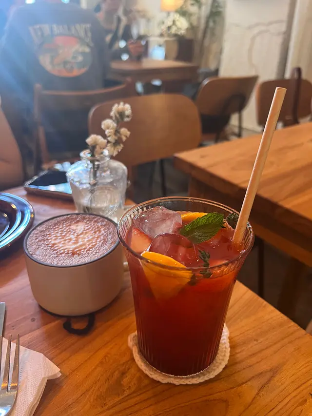 飲品有冷伯爵檸檬果茶同有拉花既熱特調朱古力🍹
