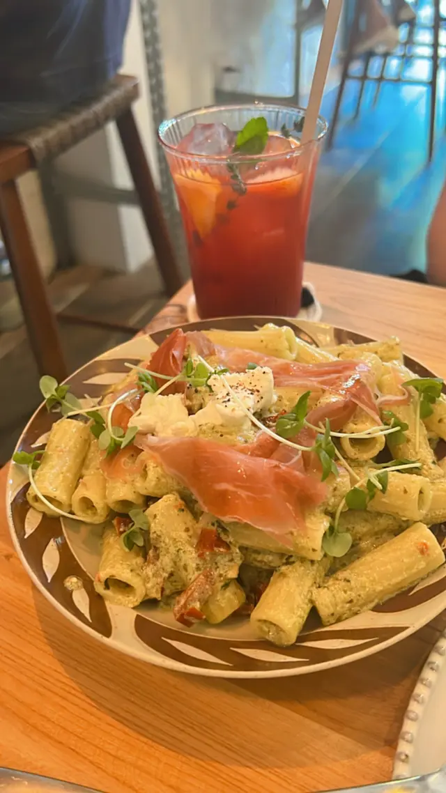 長通粉,配青醬、芝士、風乾蕃茄、16個月風乾巴馬火腿
