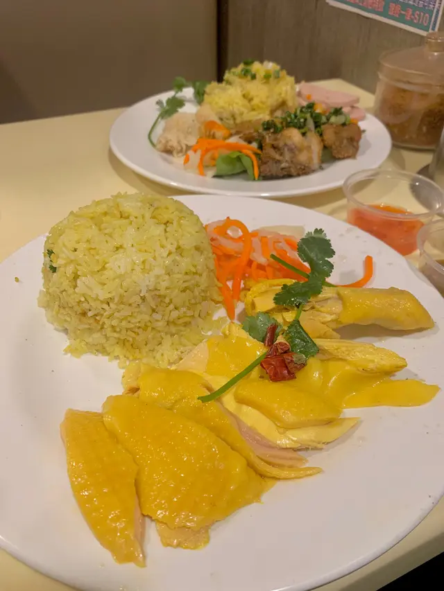 海南雞飯:無骨雞肉夠鮮嫩,加上少少雞油滲出黎,用嚟撈旁邊個黃薑飯👍🏻滋味