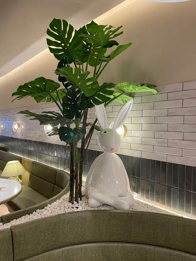 餐廳除咗可以欣賞維港嘅景色之外,室內環境都非常之舒適且別具格調。餐廳內外都佈置咗唔少綠色植物,令整個環境更加休閑。此外,餐廳嘅門口、座位旁還懸掛著好多可愛嘅兔仔,啱晒影相同打卡。