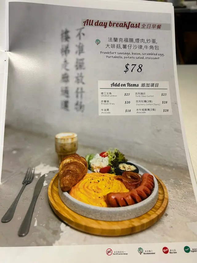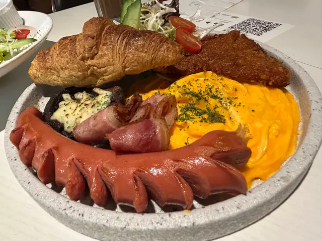 一份高質的All Day Breakfast🤩有吉列豬扒、沙律菜、滑蛋、芝士大啡菇、司華力腸、煙肉、牛角包、車厘茄和沙律等多種美味配料,擺盤精美夠吸引🤩