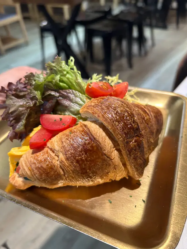 即叫即製!!!嫩滑炒蛋搭上酥脆可口的牛角酥,添上沙律份外有風味~