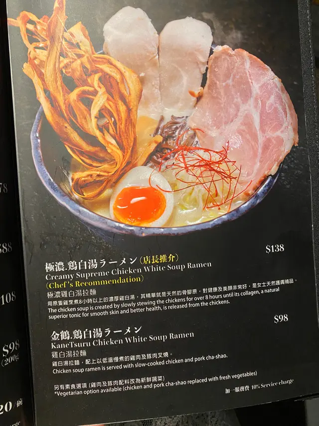 慢煮雞同叉燒正啊 勁食西門等级32023-02-07145 views Follow 之前喺度都食過好多次招牌白雞湯拉面,個湯底好濃郁creamy.今晚諗住試下鹽味同醬油湯底,試下佢既原汁原味。鹽味湯底都幾清,但係都好夠味,醬油濃d 就更加好味。每碗拉面既靈魂一定係個慢煮雞。雖然係雞胸,但雞肉慢煮過,肉質好嫩滑。連塊叉燒都好好食,佢係薄切得來好大塊,而且食落好腍同帶點油香。配料既木耳同京蔥都好多,仲有兩塊紫菜。溏心蛋好正夠軟滑,麵質又爽彈。另外加多份叉燒同埋雞,每碟都有四塊,滿足晒我呢個食肉獸。The above review is the personal opinion of a user which does not represent OpenRice's point of view.LikeShare慢煮雞同叉燒正啊 金鶴拉麵 (九龍城道) https://s.openrice.com/QrLT0tiT700Report Post Ratings5Taste4Decor4Service4Hygiene4ValueDining Method堂食