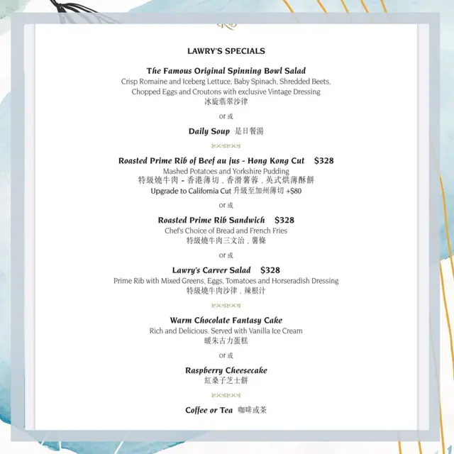 Lunch menu既prime rib本身係配Hong Kong cut