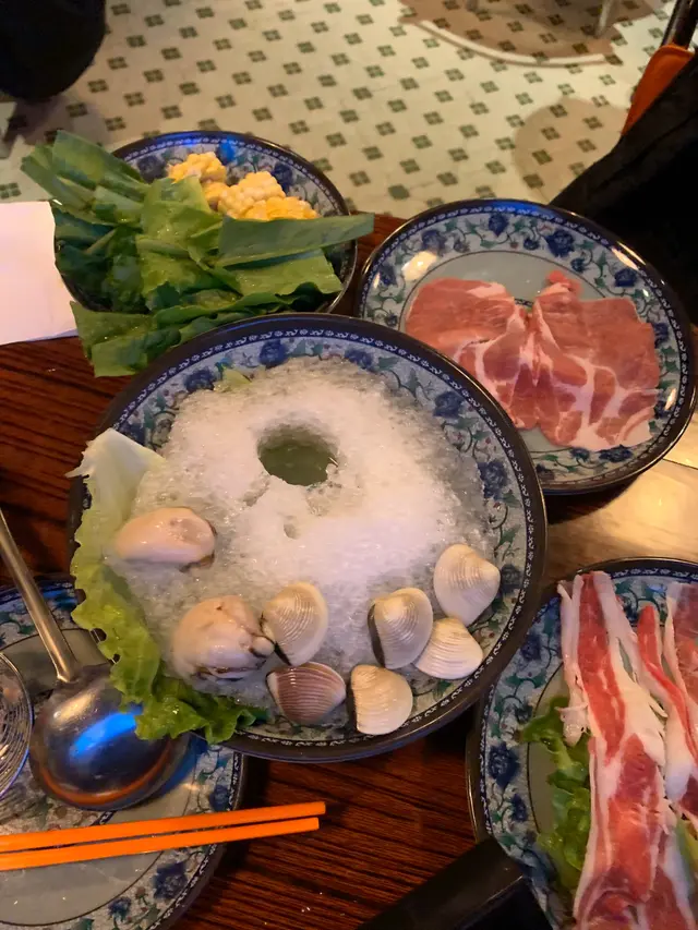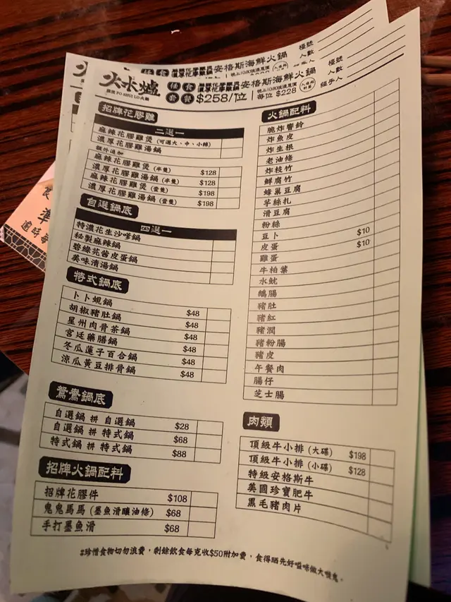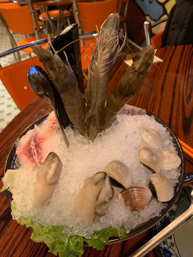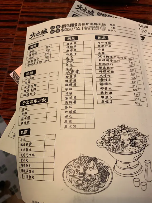 呢晚黎到火水爐,成日都好想試下,因為經過旺角好多時都會行經呢度~佢個門面充滿住懷舊色彩,上埋條樓梯就入到鋪入面~~ 黎呢度一定要book 定枱,我地平日夜晚黎已經好多人,book 左位都要等一等先入得~~ 一坐低店員就放低左車醬俾我地混醬!全部都好新鮮亦都係打邊爐必點既醬料! 呢度任食258$一位再加一~ 普通可樂、雪碧任飲~ 如果係特別d既野食就另外加錢叫~我地就覺得佢任食餐牌內既食物都好夠食同質素都好好,如果你想食再靚d既牛就可以加錢叫~ 入座就跟人頭送海鮮拼盤!海鮮包括有: 蜆:完全冇沙!碌到岩岩熟拎上黎超鮮味! 海蝦: 勁彈牙!絕對新鮮唔係雪藏貨!仲好有蝦味 蠔: 蠔都好有蠔既鮮香味!一人一隻老實講都真係唔係好夠喉! 脆肉鯇:perfect!!!! 我地叫左唔夠加錢既花膠雞湯,雞湯好正!真係有成半隻雞係入面!!!仲要係雞脾!不過就要趁早食左d雞或者夾起佢,如果唔係會愈煲愈鞋~~個湯都好甜,好有營養,飲完覺得好養生! 同埋叫左個湯底冇耐店員就送左d即食既陳皮魚蛋同炸燒賣黎~完全唔驚等個湯黎會餓親~燒賣熱辣辣岩岩炸起....好邪惡,但愈邪惡既野先愈吸引人食!陳皮魚蛋就係水準之上~ 另外仲叫左: 肥牛:好有牛味 安格斯牛:仲重牛味同埋會一塊接一塊咁食 響鈴:正常水準 炸魚皮:正! 蔬菜類:食得出好新鮮~! 真係好抵食!!