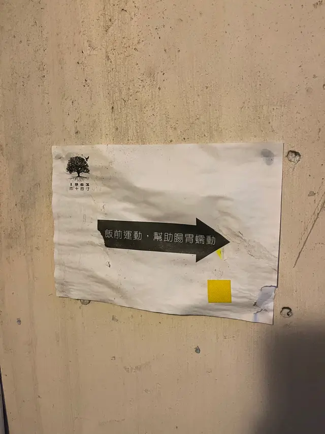 行動不便者要留意番,因為佢係唐樓嚟,所以要行兩層上去,冇電梯。行到樓梯間會有標示,標示寫嘅嘢仲非常幽默。
