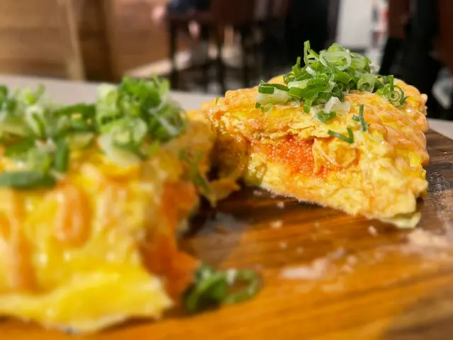 明太子芝士玉子燒$98,菜式上枱仍然熱辣辣抵讚,蛋既裏面好滑有蛋汁,配左明太子和芝士一齊食增加咬口口感