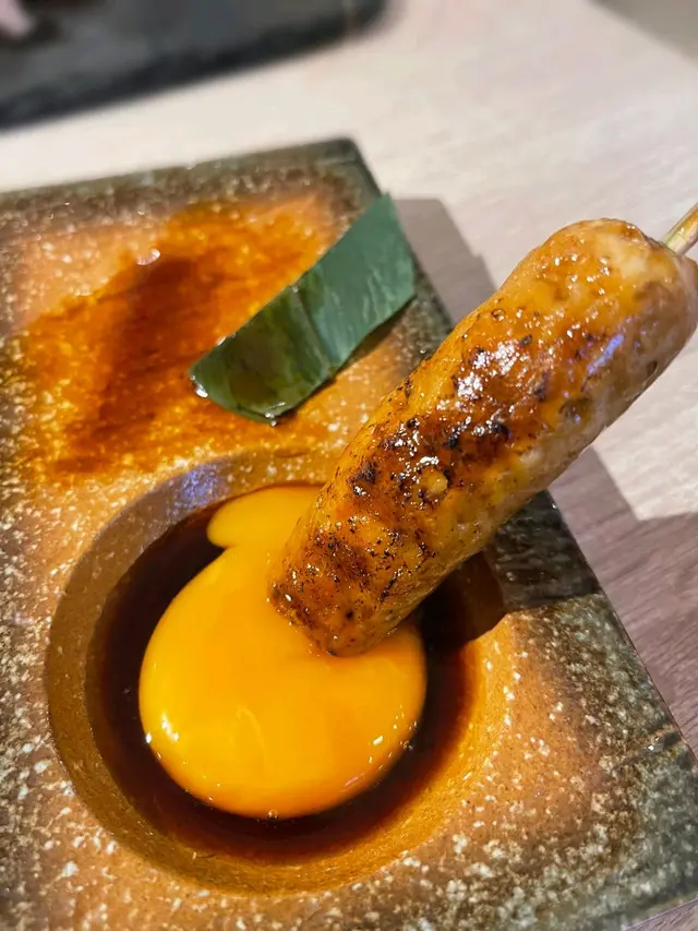 免治雞肉$38,雞肉棒釀入左雞軟骨,食落口感豐富一d,點左蛋汁之後支雞肉食落更加滑身