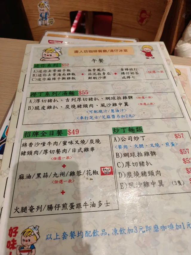 我和「清仔」有個約會 tamceci530等级42024-12-08321 浏览 关注 迷你系列去骨海南雞🐔飯+鮮蝦🦐沙律+樽仔🍼奶茶 $52抵食之選,味道唔錯。3朋友點了泰式四寶🍱飯配熱檸茶 $52同樣抵食,雞和豬頸肉份量非常多👍🏻,另有墨魚餅和蝦餅各一個。餐廳裝修以日清「清仔」為主題,充滿玩味,非常可愛,勁多打咭位置📸[🍚]口味:正常茶記水準[🔔]服务:老闆主場,招呼周到[💰]性价比:我們2:00入座,但沒有下午茶提供,比較失望。#香港美食 #紅磡 #崇潔街 #樽仔奶茶 #日清清仔 #茶記 #留港消費 #支持小店8以上食记乃用户个人意见 , 并不代表OpenRice之观点。赞好分享我和「清仔」有個約會 唐人坊咖啡餐廳(清仔冰室) https://s.openrice.com/QrLT0owfO00检举 张贴 评分3味道3环境4服务3卫生4抵食用餐日期2024-12-08等候时间5 分钟 (堂食)人均消费$50 (下午茶)
