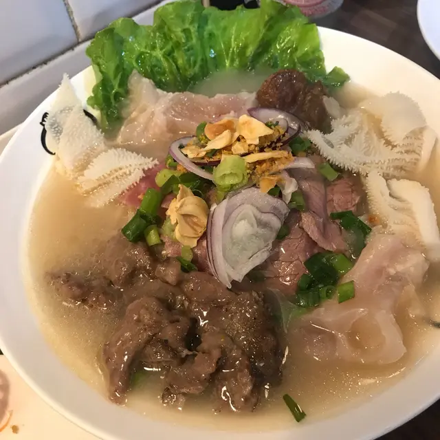 另外越式火車頭河粉$63,材料豐富,有爽口彈牙的牛肉丸、稔滑的牛筋、灼得剛好的牛肉和牛柏葉。喝一口湯,夠熱又重牛骨味,伴上辣椒, 又香又辣!