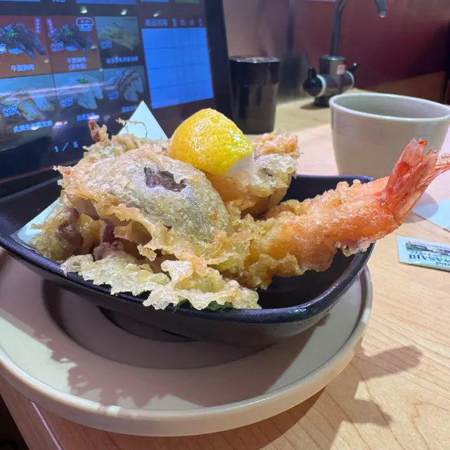 🍤蕃薯炸蝦天婦羅拼盤:沒有厚厚的炸皮,又不會把蔬菜蝦隻炸乾,不錯!