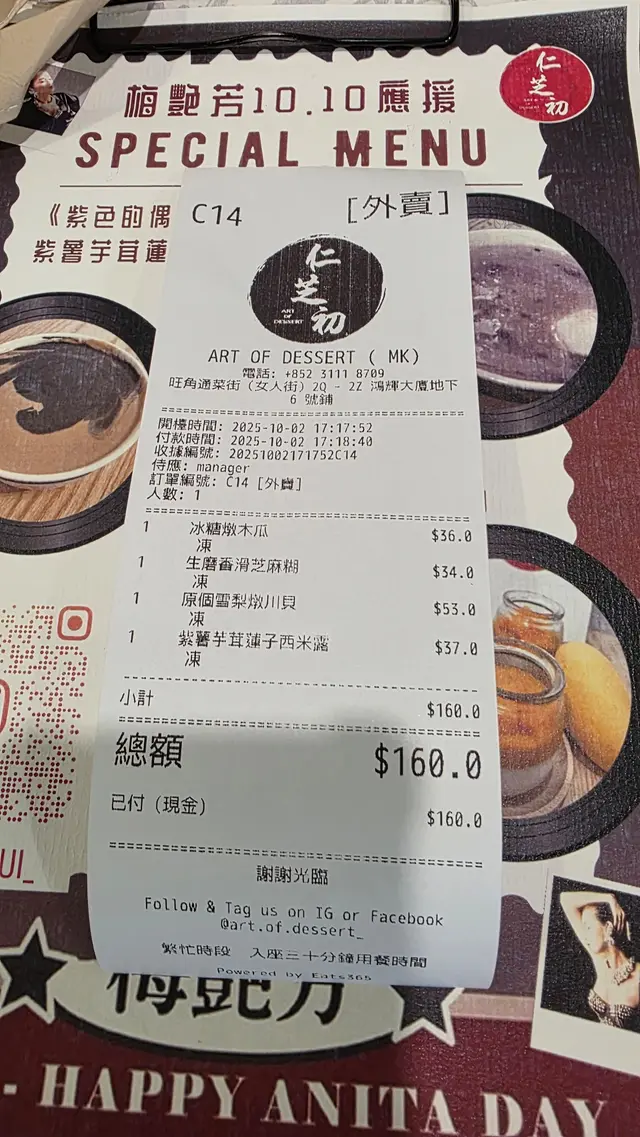 當日臨走前叫左外賣比屋企人,雪梨燉川貝和 芝麻糊還有