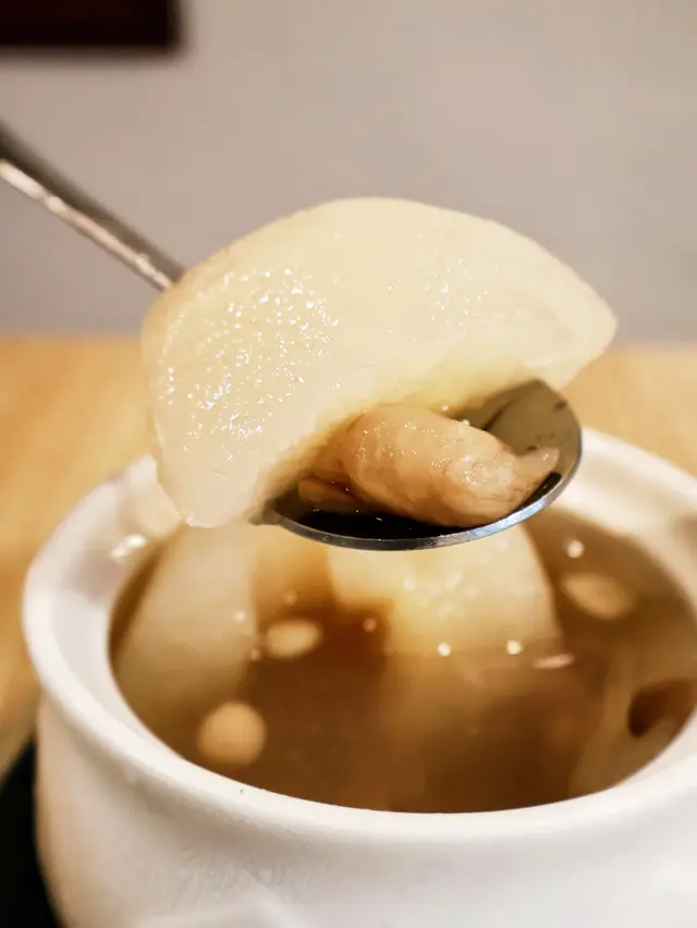 一年四季也好啱食,當日叫左個凍。原隻雪梨用慢火細燉。 冰糖 ,川貝和雪梨的精華融合在燉盅裏面。好生律解渴,十分清熱潤肺👍令人回味無窮。