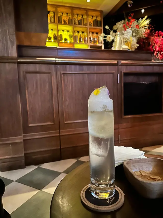去到Landmark,睇住個地址一直係度搵間bar 係邊,明明已經係附近,都見唔到。點知原來佢個門口太特別,我地睇唔到佢。一入到去,已經有滿滿既人,好彩都仲有坐位,staff 一見到我地入黎都即刻guide 我地。坐低左,望一望周圍,bar 內環境都好有feel,咁岩邀請左啲band 黎表演,大家都一路聽住表演,一路chill!講返個cocktail menu,佢地都有好多唔同selection,都好吸引,不過價錢上就適中,$120起。聽完個店員介紹,我點左FOREST EARL GREY,聽落去似fresh 啲又無咁甜。黎到杯cocktail ,即刻急不及待打左卡先,成個vibe 都好正,好舒服。Cocktail 都幾好,我幾鐘意佢既mix & match,夠晒fresh!