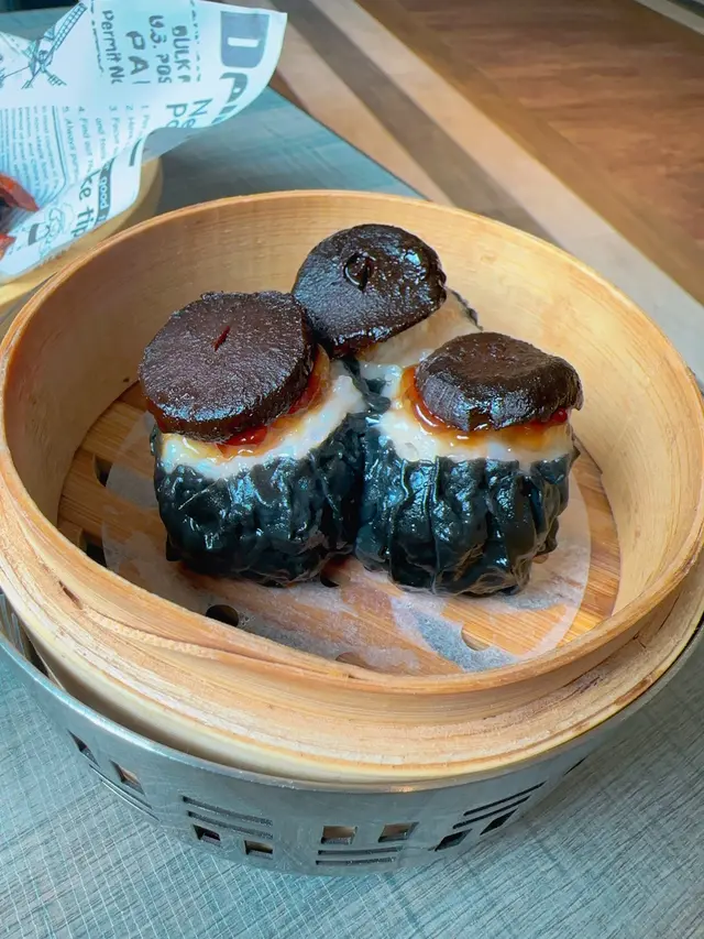 燒賣上面加咗黑蒜,