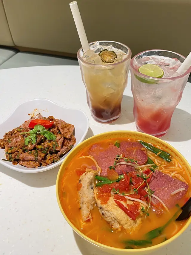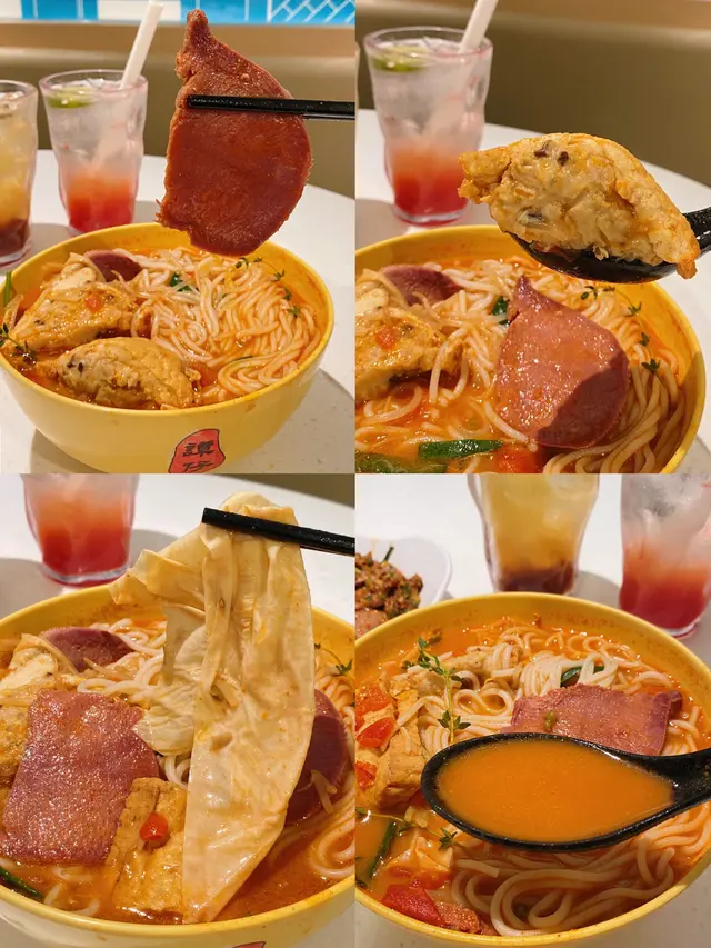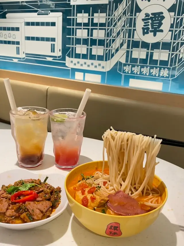 番茄湯特濃,就愛這一口酸爽!特別在加了黑白胡椒提鮮,百里香的搭配還是頭一回吃,鮮香味美,湯都喝完了🤣辣度可自選,他家的辣還是很給力的建議小辣就可。配菜很驚艷,厚切牛脷,肉質細膩毫無腥味又Q又滑。釀豆腐里塞滿豬魚肉和蔬菜,一大口下去好滿足感