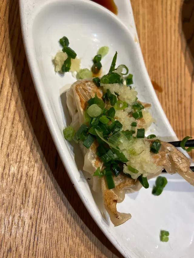 我哋叫咗「拉麵+餃子+日式煎茶」同埋「拉麵+炸雞+日式煎茶」。餃子細粒得誇張,可能同瘦嘅女仔嘅拇指差唔多size,上面有薑蓉同埋蔥,好似雞醬咁XD正常豬肉餃。