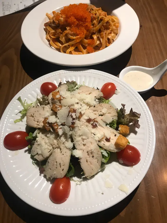 抵食半自助咖啡輕食小店 @屯門 wyeung等级22020-04-01569 浏览 关注 疫情下,來到屯門吃午餐,想搵一間比較寬躺的食店,咖啡控又想喝咖啡所以就選了Cafe。這間Cafe空間夠寬敞,坐得比較舒服自在,這間Cafe是採用半自助式服務的,首先要到收銀處下單,之後店員就會把食物拿到你的位置。下單後,食物很快就準備好,咖啡是手調的,因此要等候一下。點了2款招牌菜,蕃茄忌廉蟹肉寬條麵,一大堆的蟹籽非常搶眼,令整碟寬條麵的顏色非常colorful 爽口的蟹籽加蟹肉非常不錯。餐牌更溫提客人寬條麵是先鮮蟹肉,因此有機會有蟹殼,要小心啊蕃茄忌廉蟹肉寬條麵$85雞胸凱撒沙律,滿滿的雞胸鋪滿了整碟沙律,雞胸肉質結實,只是黑椒略嫌重手了一點。凱撒雞胸沙律$58Cappuccino $32以上食记乃用户个人意见 , 并不代表OpenRice之观点。赞好分享抵食半自助咖啡輕食小店 @屯門 BYOB Coffee Roaster https://s.openrice.com/QrLT0Iriu00检举 张贴 评分4味道5环境3服务4卫生4抵食推介美食蕃茄忌廉蟹肉寬條麵$85凱撒雞胸沙律$58Cappuccino$32用餐日期2020-03-28用餐途径堂食人均消费$89 (午餐)