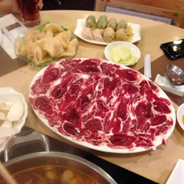 首先講下打邊爐唔少得既材料,當然係肥牛啦。我地叫左手切安格斯肥牛,總共叫左兩碟, 真係好好味, 肥廋均衡而且好有口感又夠味, 食落口一D 都唔韌
