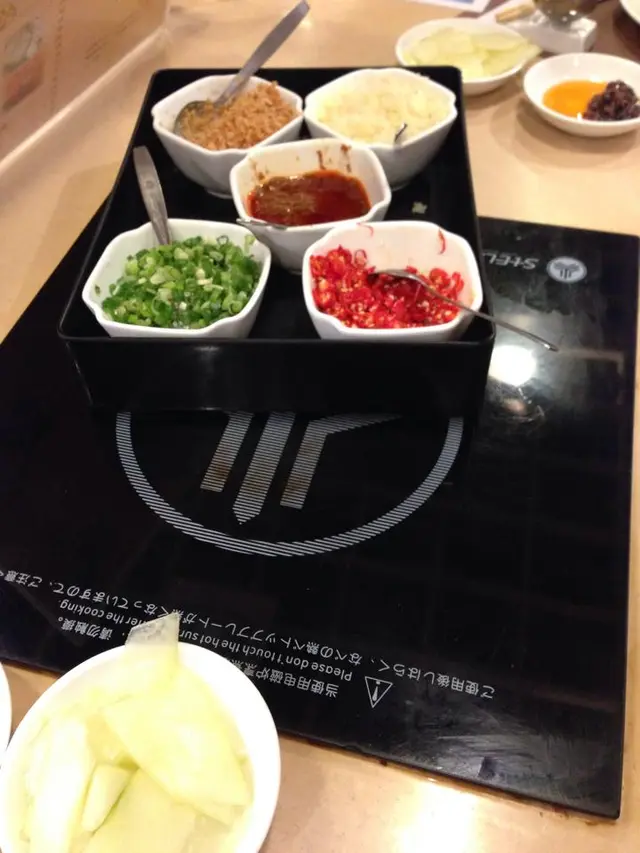 雖然呢排好熱但都無阻我想打邊爐既意慾, 黎左九龍城既大邊爐…. 上左樓之後地方唔算太大但一D 都唔會覺得迫, 坐低左之後侍應好快就拎左MENU同調味盤黎包括䓤花, 蒜蓉, 辣椒等等……