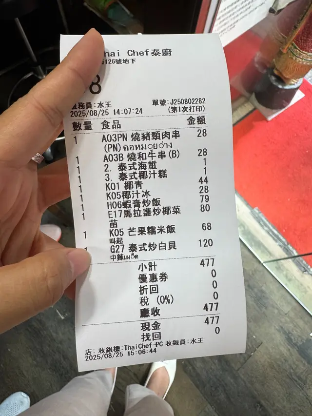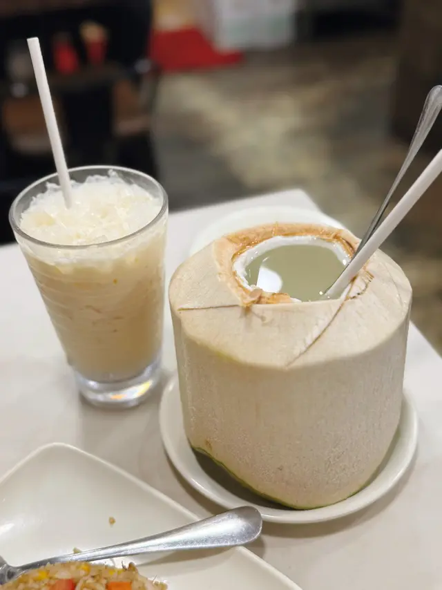 自己每次吃泰菜都會喝椰青~ 這裡的椰青超大個又夠冰凍,清甜可口可以解辣!男友就選來冰凍的椰汁冰,甜度剛好,椰奶味非常重夠香夠濃