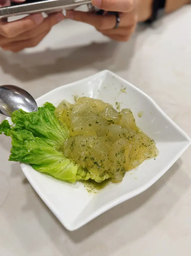 最近店家推出性價比超高優惠,就是消費滿指定金額就可以用$1 加購一款精選小菜,四款小菜有泰式生蝦、泰式海蜇、泰式椰汁糕跟泰式木瓜沙律~ 試了泰式海蜇和泰式椰汁糕,兩款都超好吃!跟平常吃的條狀完全不同,這裡的泰式海蜇是一小口的非常爽脆Q彈,就像在吃有𡁻勁的啫喱般,搭配泰式生蝦的醬汁,微酸辣勁開胃!至於椰汁糕就非常抵食,$1就有4個啊!椰汁糕入口軟滑,上層是幼滑的椰汁香氣,下層就是煮得軟糯綿密、混入粟米粒的西米糕,口感豐富甜度剛好,愛吃椰香的一定很喜歡~