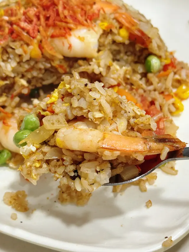 前幾款都是有不少惹味醬汁烹調而成的菜餚,總覺得欠缺什麼似的來個炒飯就可以拌醬汁吃~ 店家有蝦醬或蝦膏炒飯而我們選了後者貪其香味更濃!炒飯超有鑊氣,蝦膏的鹹香跟櫻花蝦的鮮味令炒飯生色不少;加上用料不少還有幾隻大蝦令口感相當豐富超好吃!再配其他餸菜的醬汁又成另一種風味也是好吃~