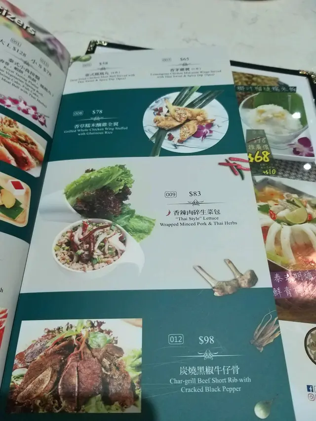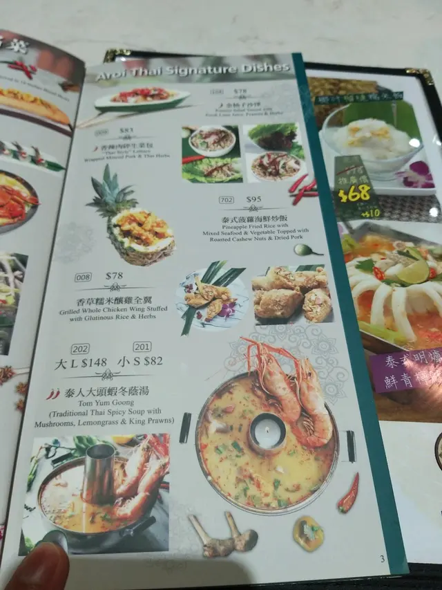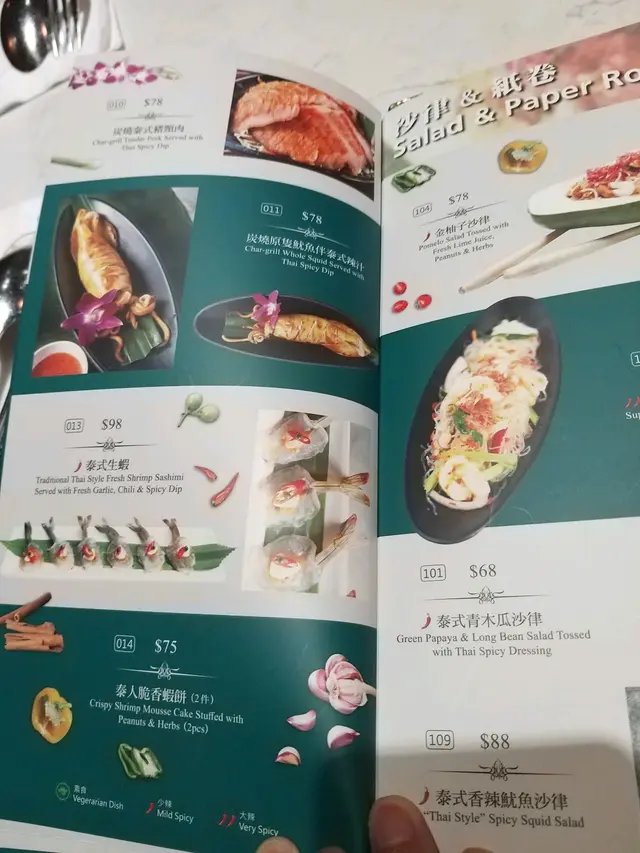 餐廳 主打正宗泰菜各類泰式食品有齊菠蘿炒飯,明爐烏頭,泰式蝦餅,生蝦刺身, 串燒都都齊備