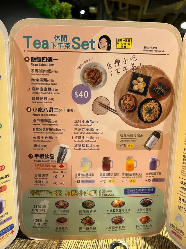 抵食精緻下午茶☕️✨ agnes_cat等级32023-05-28617 浏览 关注 話說好多食肆既下午茶最多都係去到5:30pm,要搵間去到6:00pm既真係唔容易。好彩俾我搵到呢間鐵牛台灣麵佢下午茶去到6:00pm,人少少,而且都算抵食,主食加三個小食再有野飲1下午茶set$40我叫左呢個:主食:麻醬乾麵小吃:鹽酥雞、地瓜、小香腸飲品:熱奶茶下午茶份量做晚餐剛剛好,夜晚要早食,唔好食太多先可以無咁肥小小地一碗麵加埋三款小吃,每樣少少試下咁,個人覺得個麵幾好,地瓜好好味,小香腸就係我個人必食,鹽酥雞就一般般啦。佢個下午茶勝在擺得夠精緻,見到咁靚即刻成件事好味左至於個奶茶,由於我好勇敢叫左無糖,所以唔係咁好味,台灣奶茶都係要少少甜先得,下次啦2以上食记乃用户个人意见 , 并不代表OpenRice之观点。1分享抵食精緻下午茶☕️✨ 鐵牛台灣牛肉麵 (旺角中心第一座) https://s.openrice.com/QrLT01D9900检举 张贴 评分5味道5环境4服务5卫生5抵食推介美食下午茶set$40用餐途径堂食
