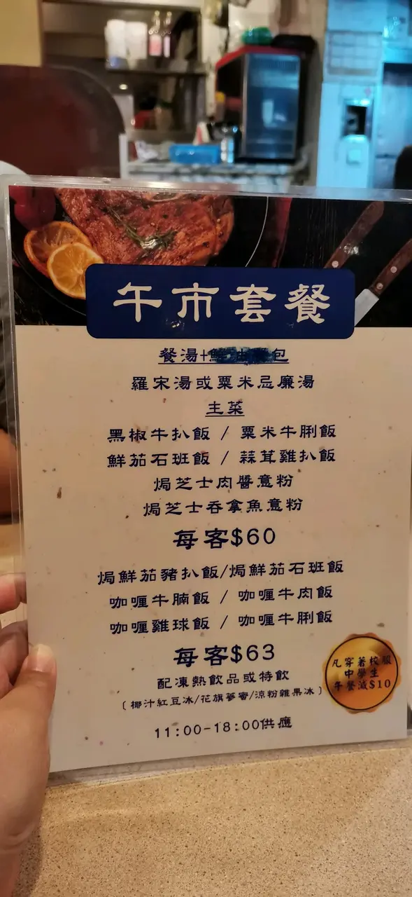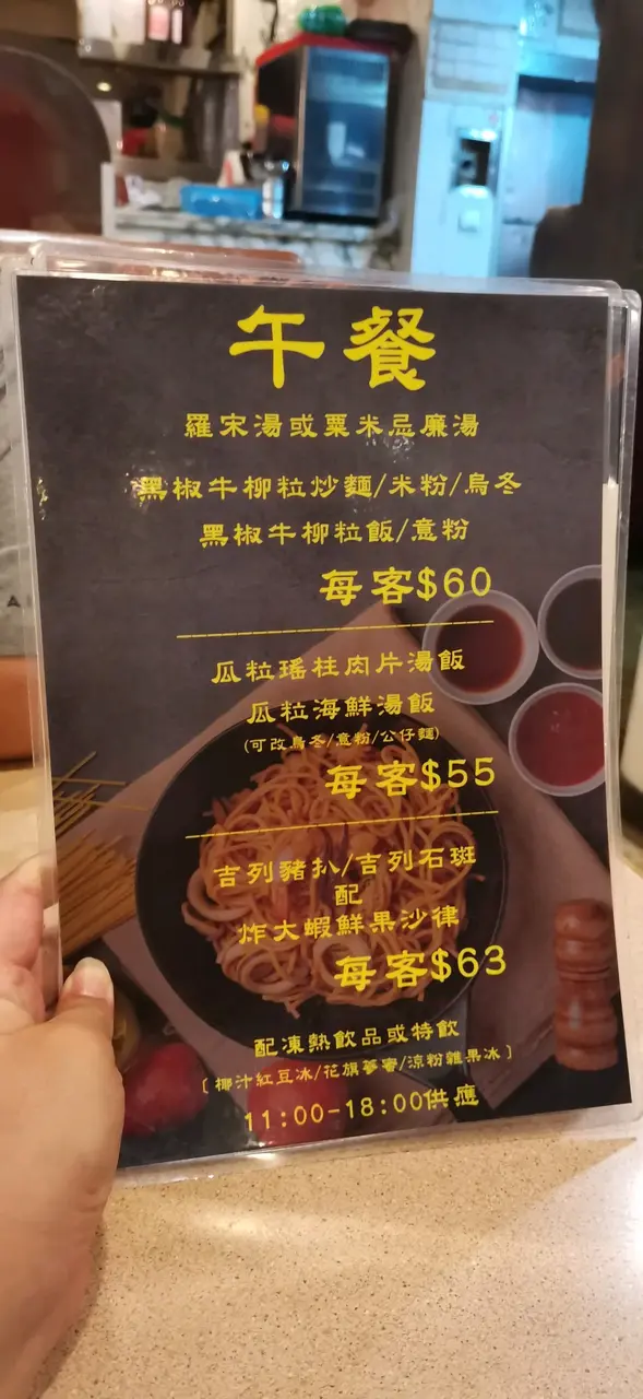 抵食,份量多 komoridiary等级42023-09-101K 浏览 关注 昔日少年時代還存在的懷舊餐廳,價錢實惠,兩個人來吃,午餐只需60元已經包了餐湯及特飲,我們點了咖喱牛舌飯,牛舌很厚身,份量很多,咖喱帶上椰汁,非常香滑而不太辣。黑椒牛柳粒炒麵,鐵板上,牛柳份量同樣十分多,牛柳非常嫩滑,炒麵底脆卜卜很好吃。121羅宋湯黑椒牛柳粒炒麵$60咖喱牛舌飯$60咖喱牛舌飯$60以上食记乃用户个人意见 , 并不代表OpenRice之观点。赞好分享抵食,份量多 哥登堡餐廳 https://s.openrice.com/QrLT0m3LC00检举 张贴 评分5味道5环境5服务5卫生5抵食推介美食羅宋湯黑椒牛柳粒炒麵$60咖喱牛舌飯$60咖喱牛舌飯$60用餐途径堂食