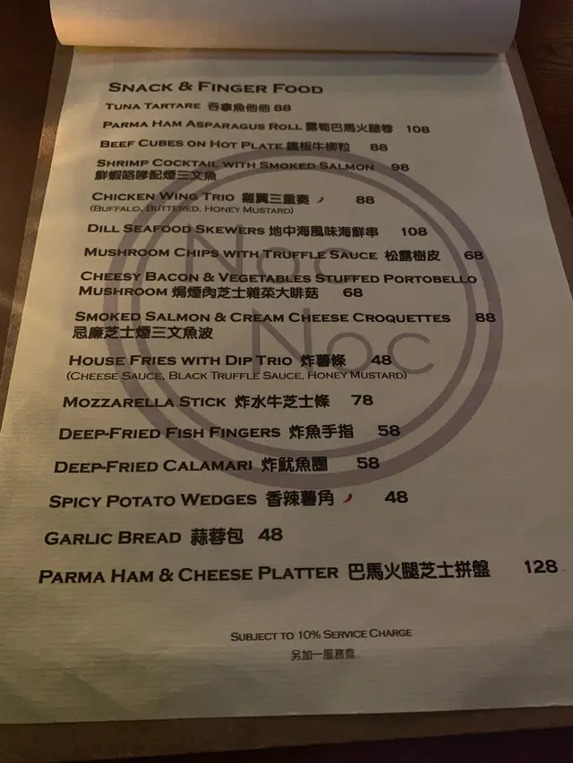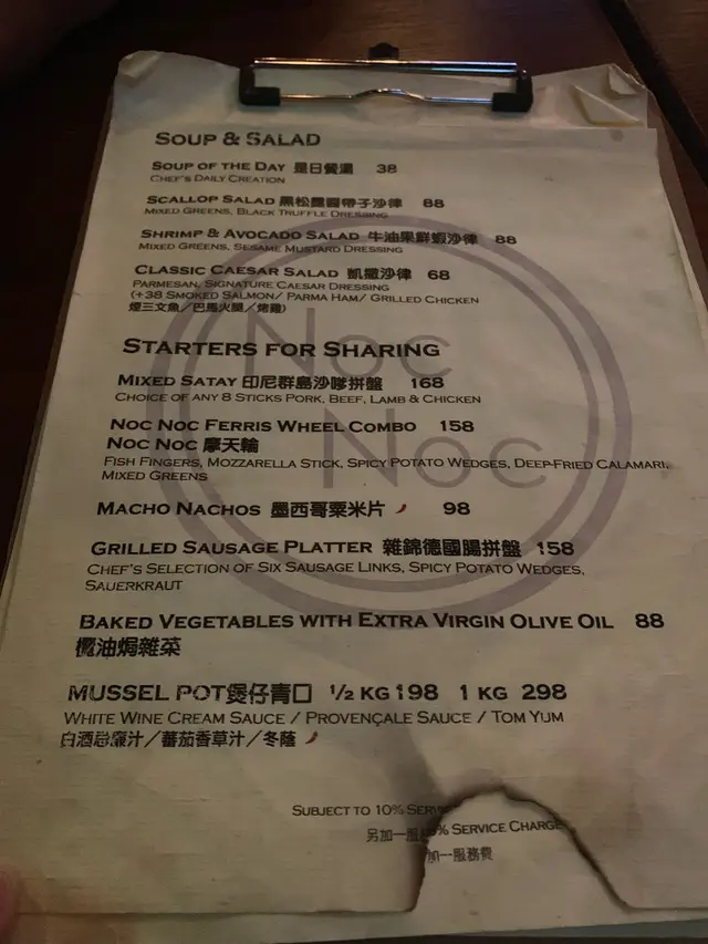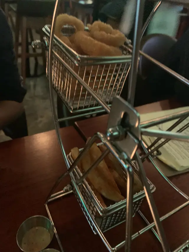 「Noc Noc摩天輪拼盤」其實只不過是個小食拼盤而已,但店家卻很有創意地攪gimmick弄了個摩天輪出來,厲害🤣 這摩天輪有五個小食,包括沙律,炸魚手指,炸水牛芝士條,炸魷魚圈及香辣薯角,另有三款醬料奉上。
