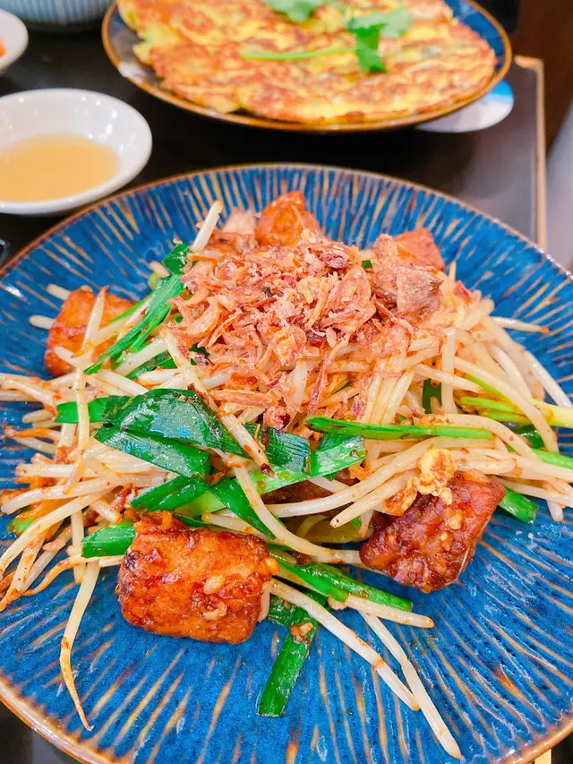 份量看似不大,但用料很足,幾乎啖啖都能吃到蠔仔,加上多吃會覺得膩,所以兩個人吃的話倒是剛剛好。附上三款醬汁,一款是䶢到不得了的油,一款辣油,一款泰式辣醬。算是水準以上的菜式。