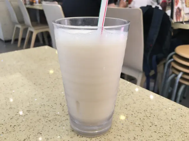 凍豆漿(原價$9),凍飲要加$3,🥤味道普普通通,略嫌淡咗啲。