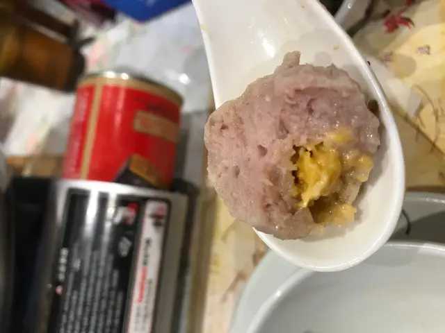 其次就係手打墨魚丸, 好有咬口, 同埋個爆汁黑琢肉丸, 真係估你唔到, 原來個汁係咸蛋黃, 第一次食, 亦都想像唔到係咁, 而且幾好味, 但建議就唔好食太多啦。