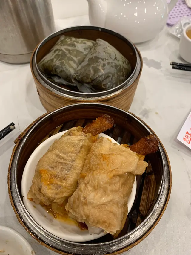 食完呢兩樣嘢,又見到點心車行過,今次就叫咗個珍珠雞同埋鴨腳扎!鴨腳扎包住見芋頭!有見好似雞肉嘅物體!一隻鴨腳,味道都濃郁!又唔會太鹹,雖然鴨腳就細隻啲,但都可以接受!最後珍珠雞,味道普普通通!而且餡料並唔係太多!可以話有些少失望!