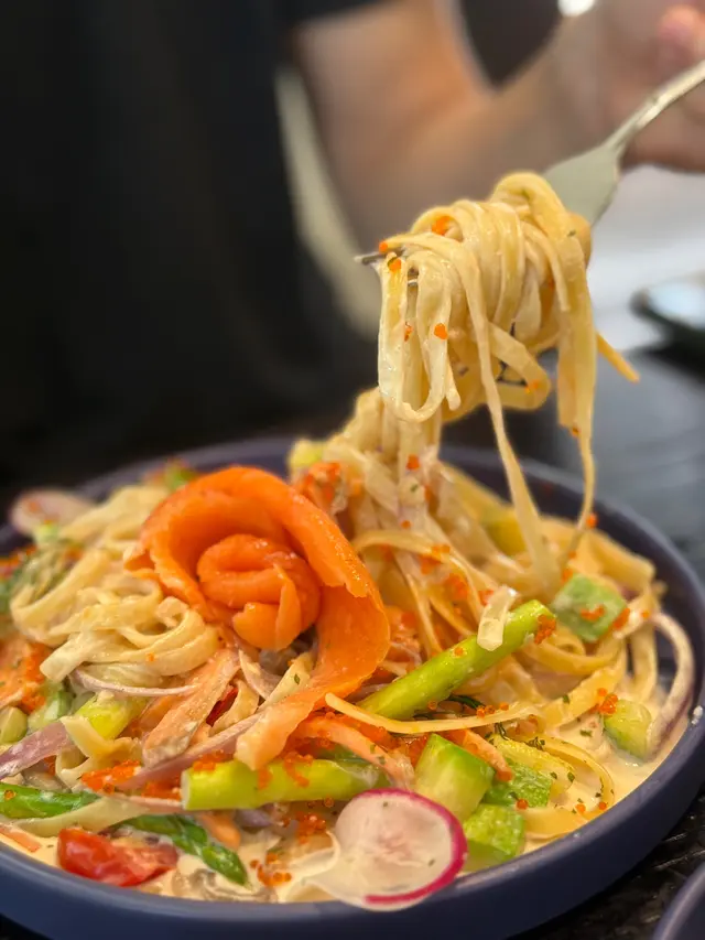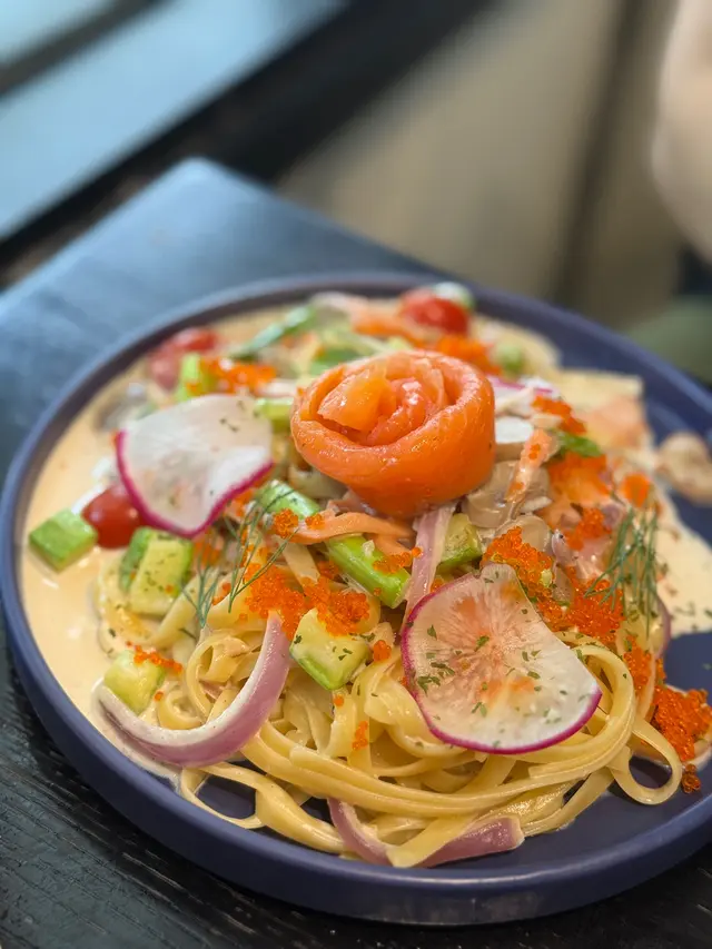 🐟 白汁煙三文魚飛魚籽扁意粉 $98