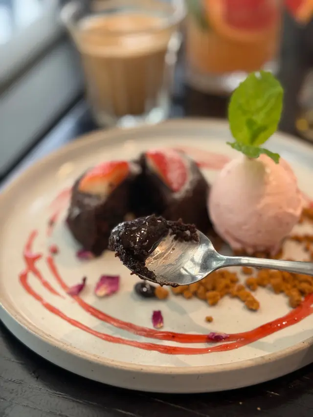 配搭士多啤梨雪糕冰火交融,朱古力味濃郁!