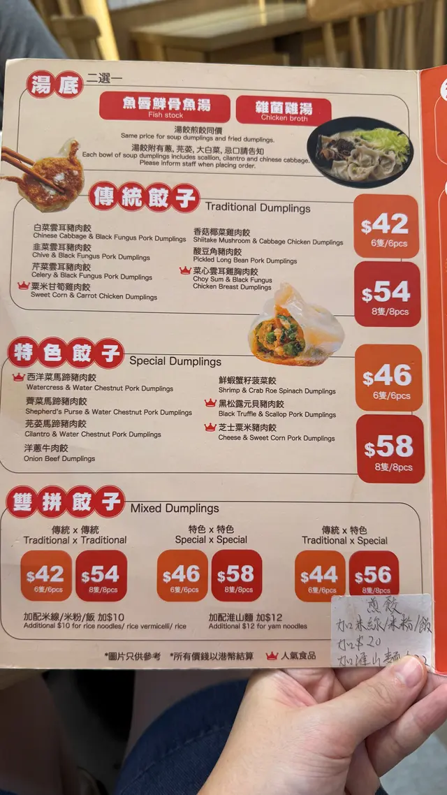 - 雙拼湯餃(8隻,魚湯):餃子脹卜卜、大大隻,皮薄有咬口;以份量嚟講幾抵食。